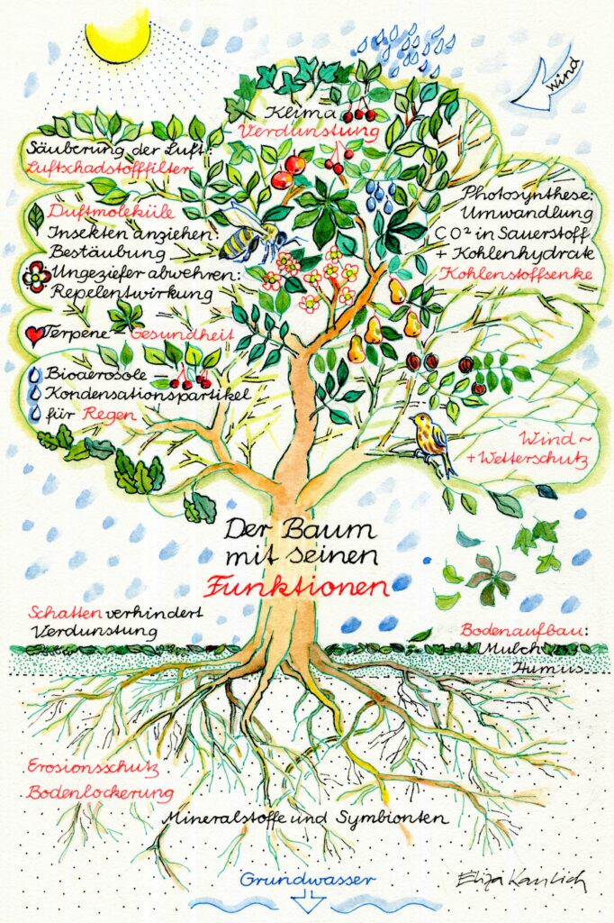 Erfahren Sie hier mehr über den Baum und seine Funktionen im Kontext von Agroforst.