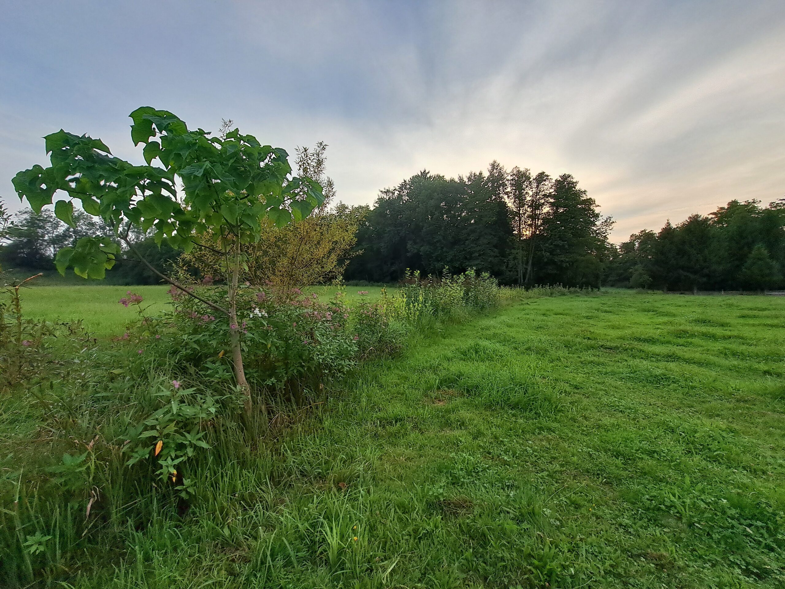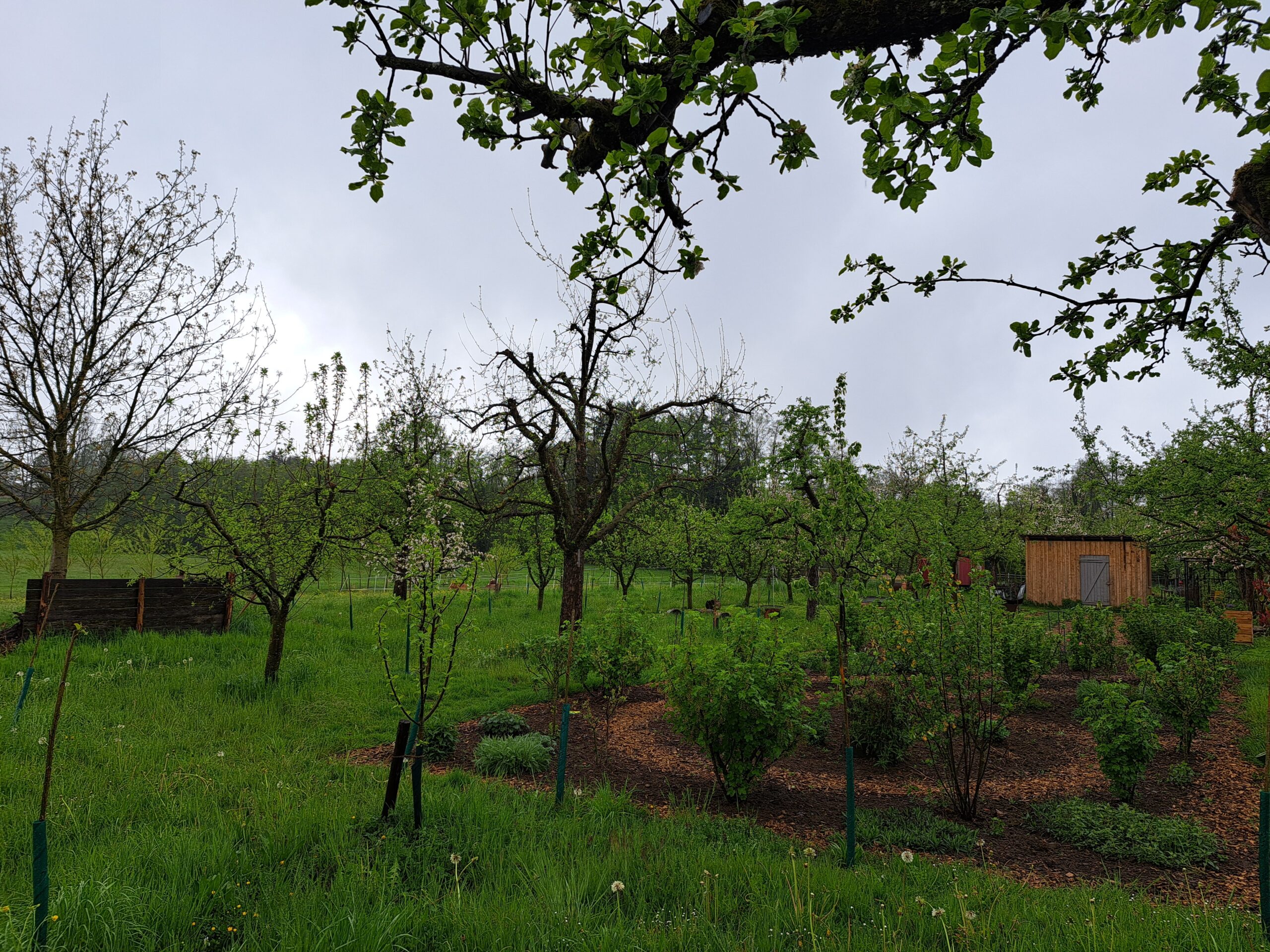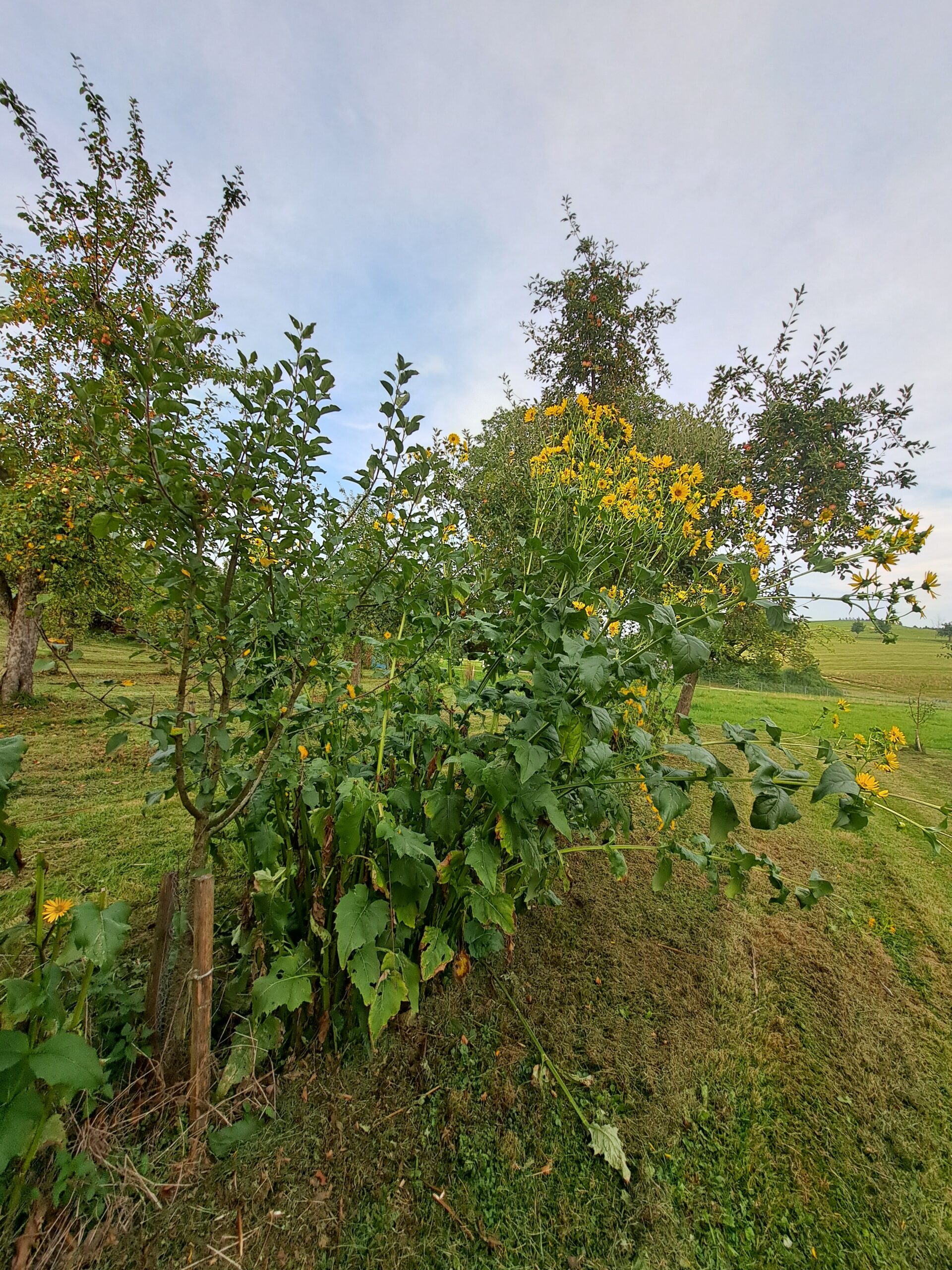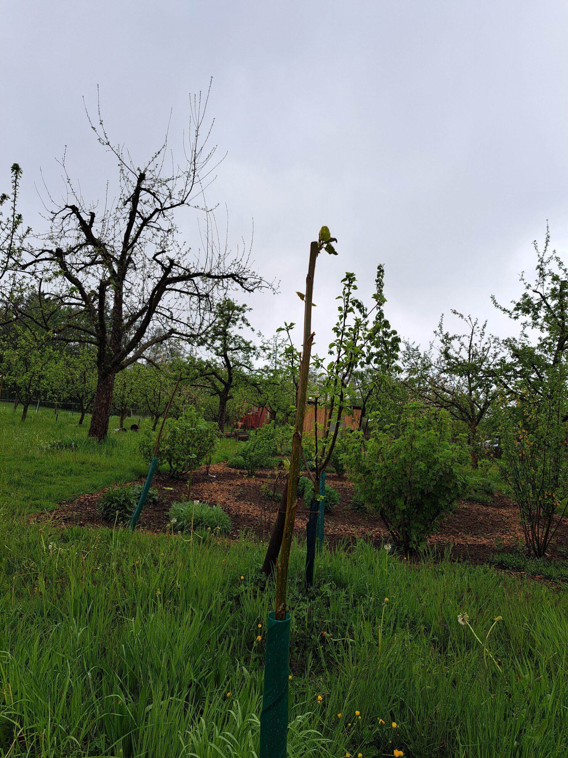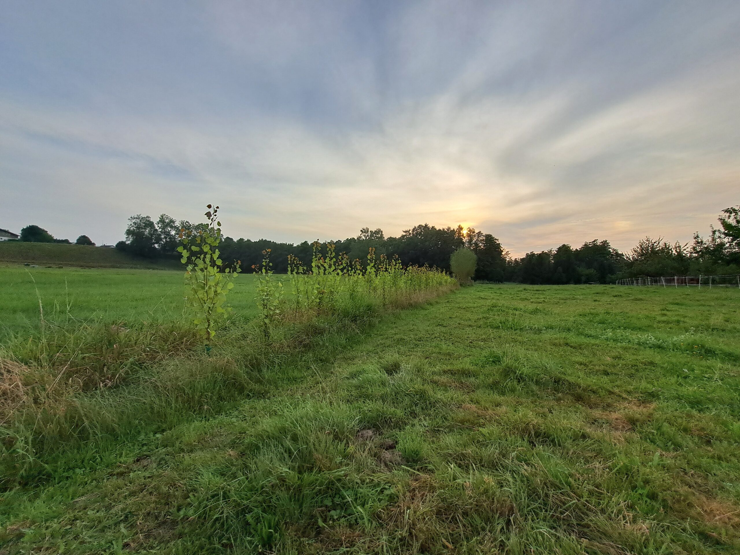 Wir pflanzten 75 Pappeln zwischen Hochstammapfelbäumen mit der Überlegung eine schnellwachsende Baumart zu setzten, die einfach zu pflanzen, hitzeresistent und sehr schnell wachsend ist. Dadurch kann in kurzer Zeit eine bodenschützende und -kühlende Beschattung der Streuobstfläche entstehen. Zusätzlich dazu wird die Flora und Fauna durch eine weitere Baumart bereichert und Lebensraum für Tieren und Insekten geschaffen.