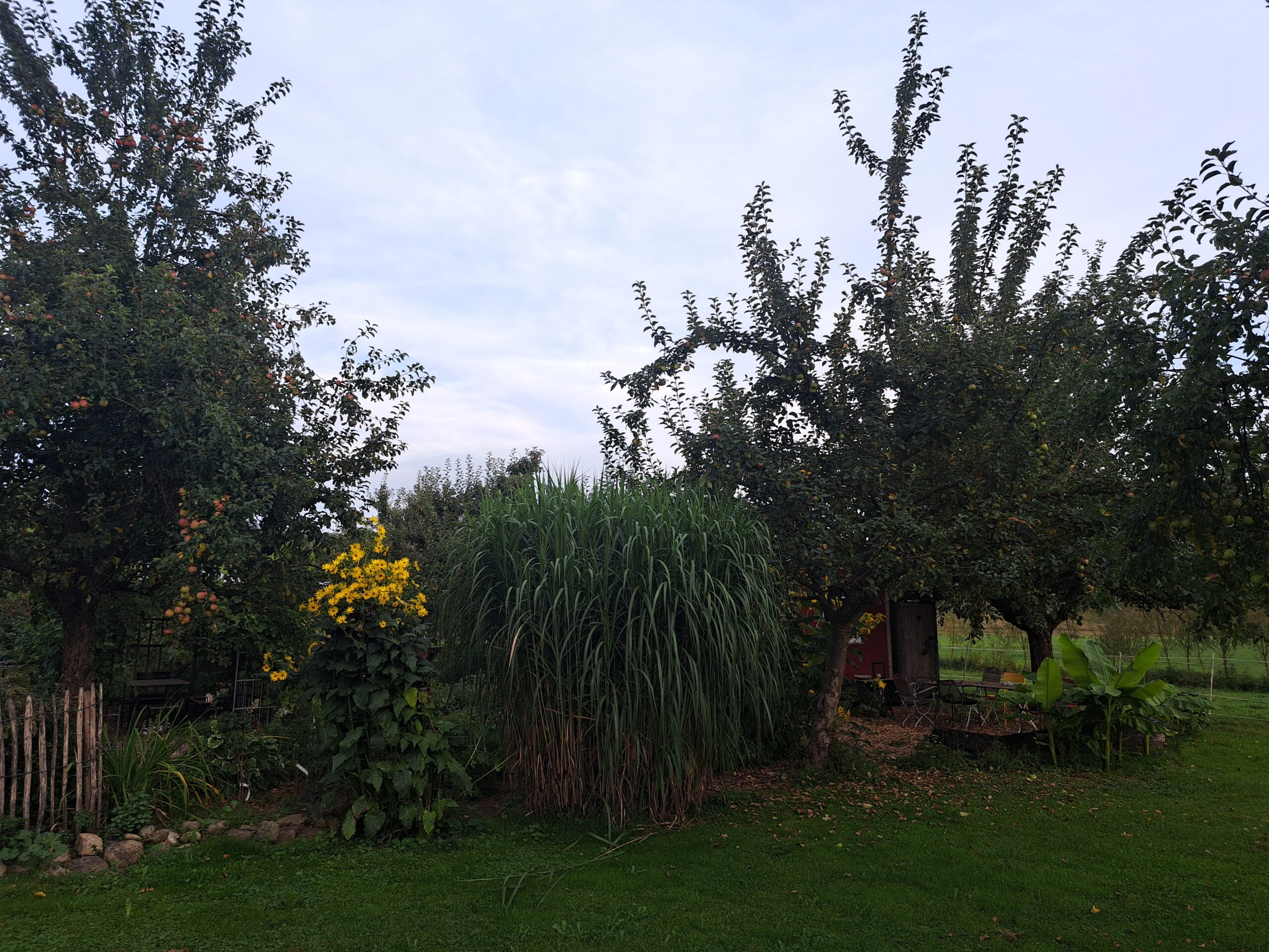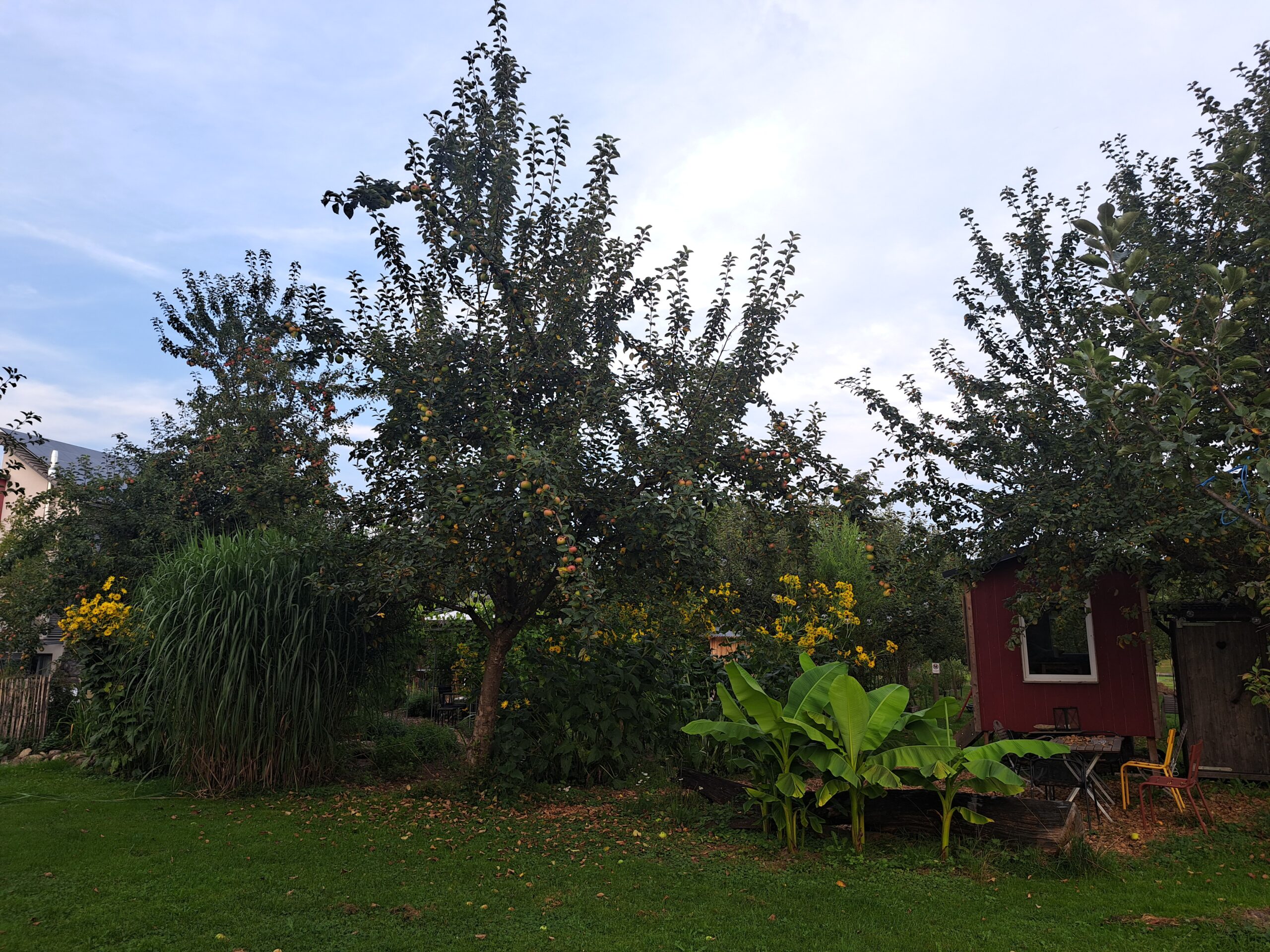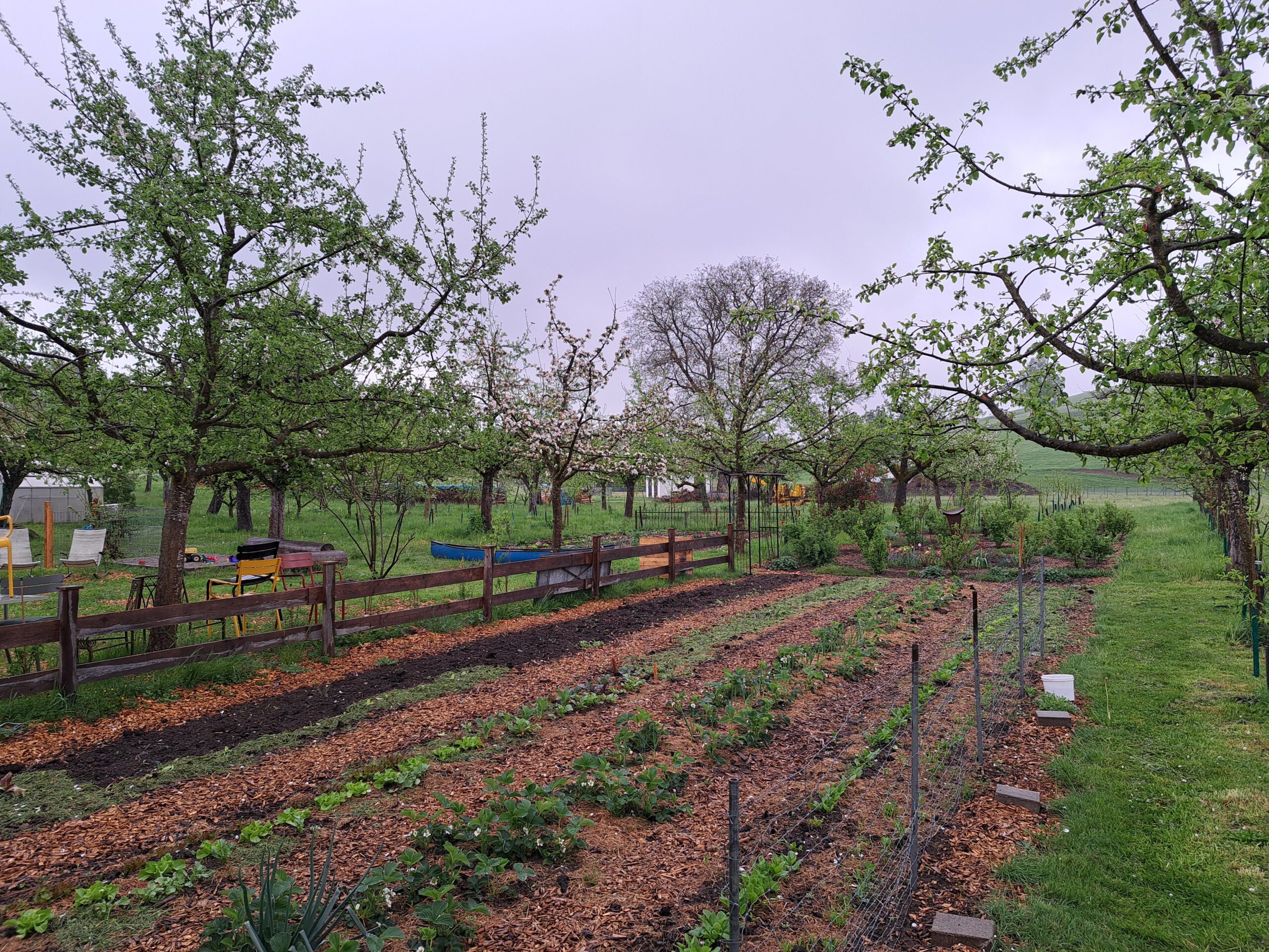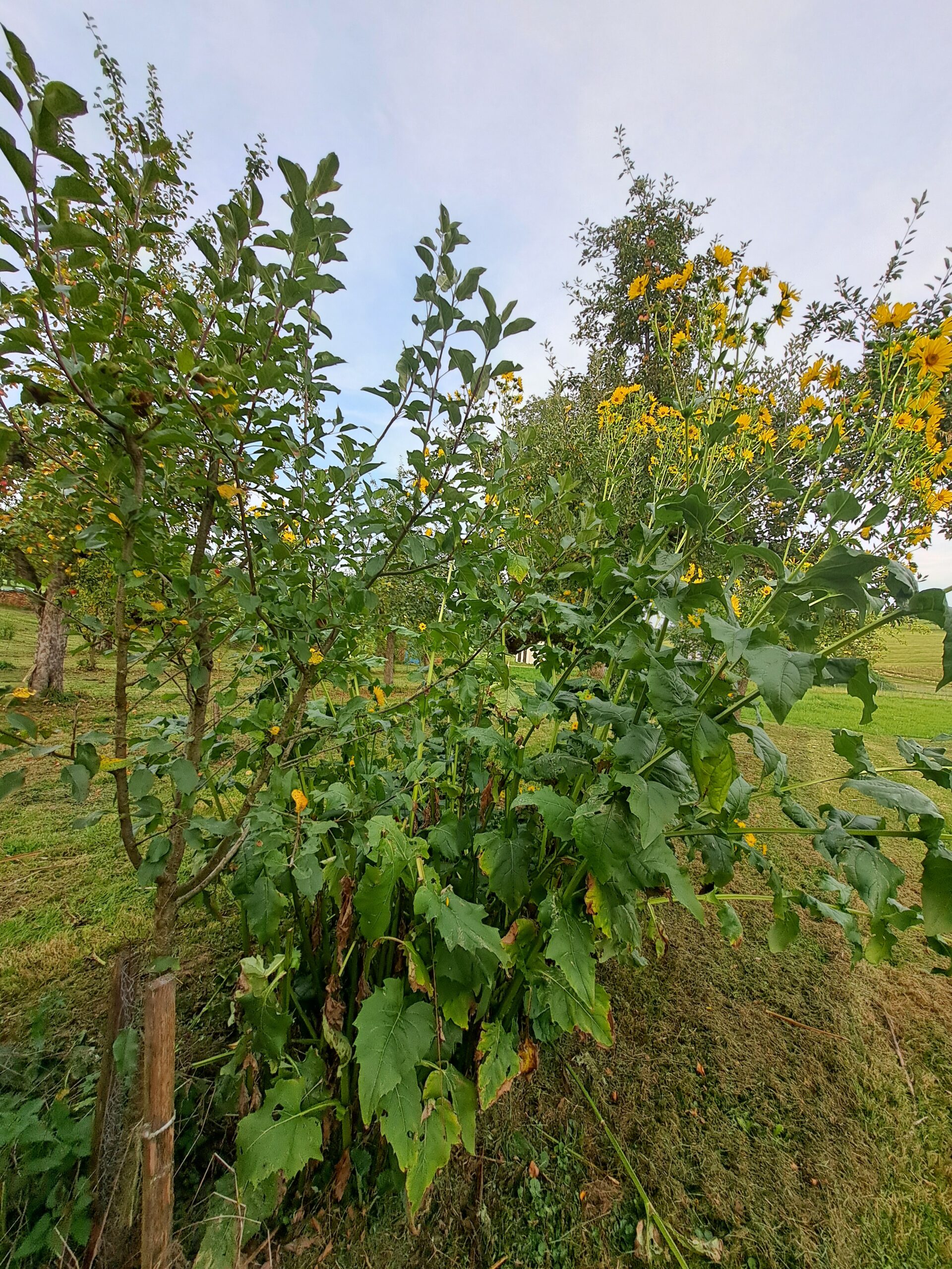 Wir pflanzten 75 Pappeln zwischen Hochstammapfelbäumen mit der Überlegung eine schnellwachsende Baumart zu setzten, die einfach zu pflanzen, hitzeresistent und sehr schnell wachsend ist. Dadurch kann in kurzer Zeit eine bodenschützende und -kühlende Beschattung der Streuobstfläche entstehen. Zusätzlich dazu wird die Flora und Fauna durch eine weitere Baumart bereichert und Lebensraum für Tieren und Insekten geschaffen.